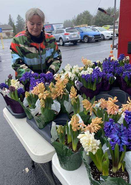 Brightly colored hyacinths, mums, tulips and daffodils were available. Cindy Novato, Kidder Township secretary, picked out purple hyacinths. Her husband, Ed, said, “They remind me of my childhood. There were always hyacinths on my grandmother’s front porch and the smell brings me back. We take the bulbs and plant them and they come back forever.”