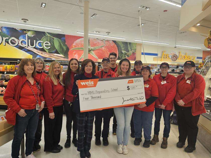 Ashley Harrison, right, manager of the Weis Market Mountain Top store, presents a donation to Theresa Long, head of school for MMI Preparatory School, on the left. Weis Markets donated $4,000 to MMI Preparatory School at the Mountain Top store location and $3,000 to Wyoming Valley Montessouri School at the Plains store location. These donations were made as part of the Company’s annual EITC donation. In total, the company contributed $750,000 to organizations for the 2025 EITC Donations. CONTRIBUTED PHOTO