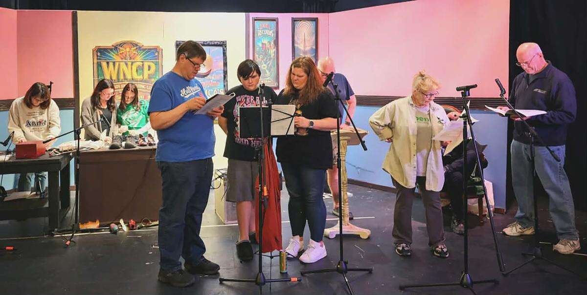 Unlike traditional stage productions with elaborate sets and costumes, live radio theater focuses on performance and imagination. Actors perform at classic microphones with scripts in hand while sound effects are created live beside them, resulting in an intimate and engaging experience that blends nostalgia with live theatrical energy.