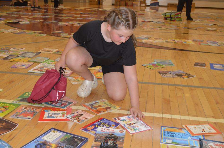Ella Loesch, a third grade student at Lehighton Area Elementary Center, looks at offerings during the school’s annual book swap Tuesday night. The event, started by Ron Rabenold in 2004, aims to promote literacy among students and families. The book swap also tied in with a Title I parent night Tuesday that included hands-on Earth Day activities. JARRAD HEDES/TIMES NEWS
