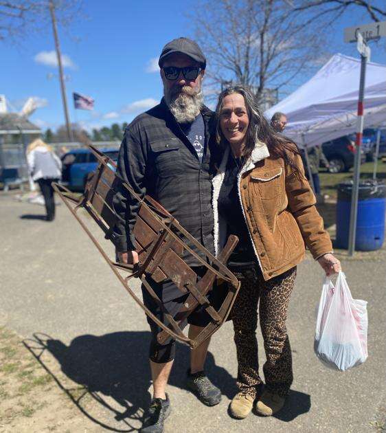 Jason Denniston, Kunkletown, was happy walking around with his find: an old Flexible Flyer sled.