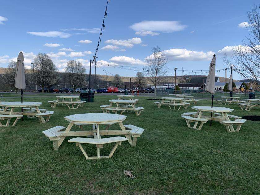 New tables with umbrellas are shown at Heisler’s Dairy Bar. JILL WHALEN/TIMES NEWS