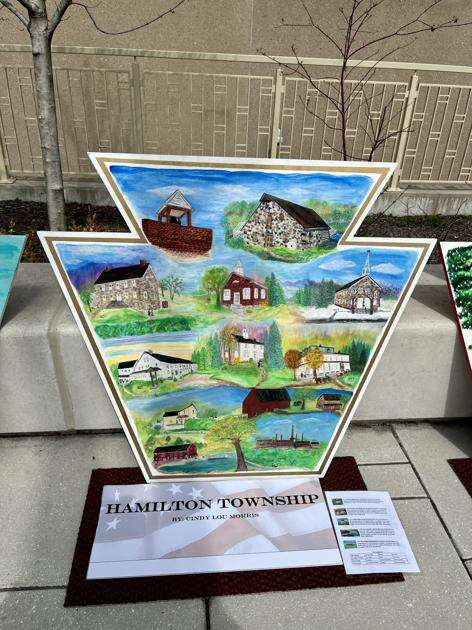 Jane Mayhew MacHale, who painted the scenes on the keystone for Middle Smithfield Township, said, “There’s so many things that Middle Smithfield is known for.”