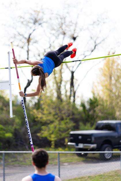 Pleasant Valley’s Alexandra DePalma won the pole vault in Wednesday’s meet with PM West, clearing 10-6. TAJ FALCONER/SPECIAL TO THE TIMES NEWS