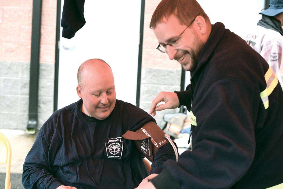 When firefighters completed a segment of training and emerged from the smoke-filled building, members of the Lehighton Ambulance Association checked their blood pressure and other vital signs to ensure they were OK.