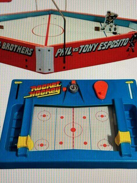 Another Classic Game(s) ... In 1970, Battling Brothers Hockey game featured a photo of the Espositos playing the game on its box cover, and the flat metal player pieces bore their likenesses. It was a tabletop game with small rink goals with one Esposito at the ends of the rink.